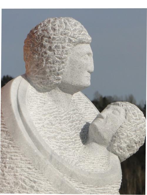 Die modern gestaltete Statue mit Ihren hellen Stein, ist ein